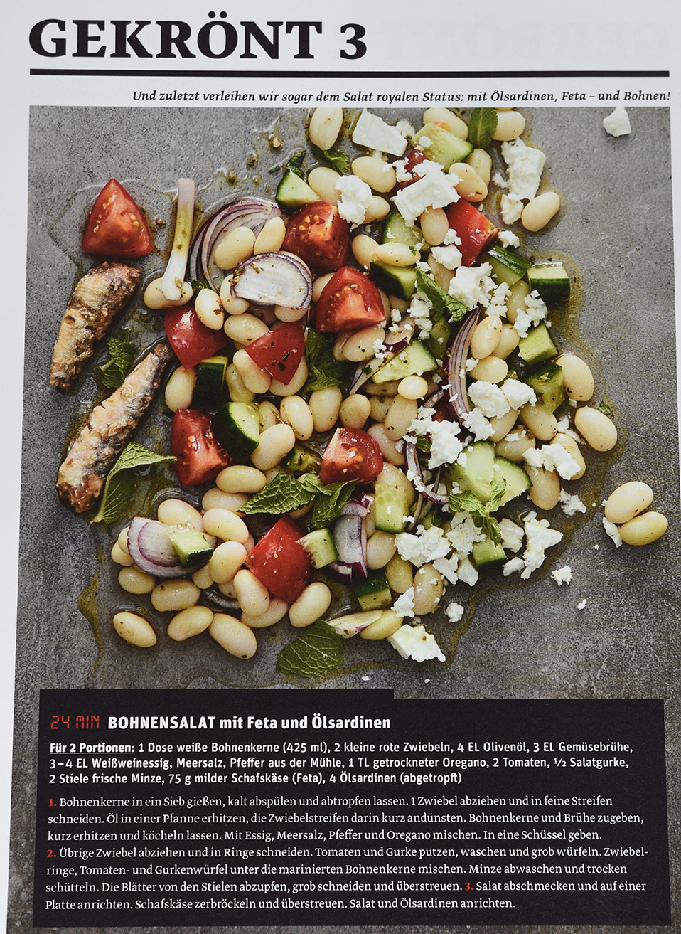 Bohnensalat mit Feta und Sardinen