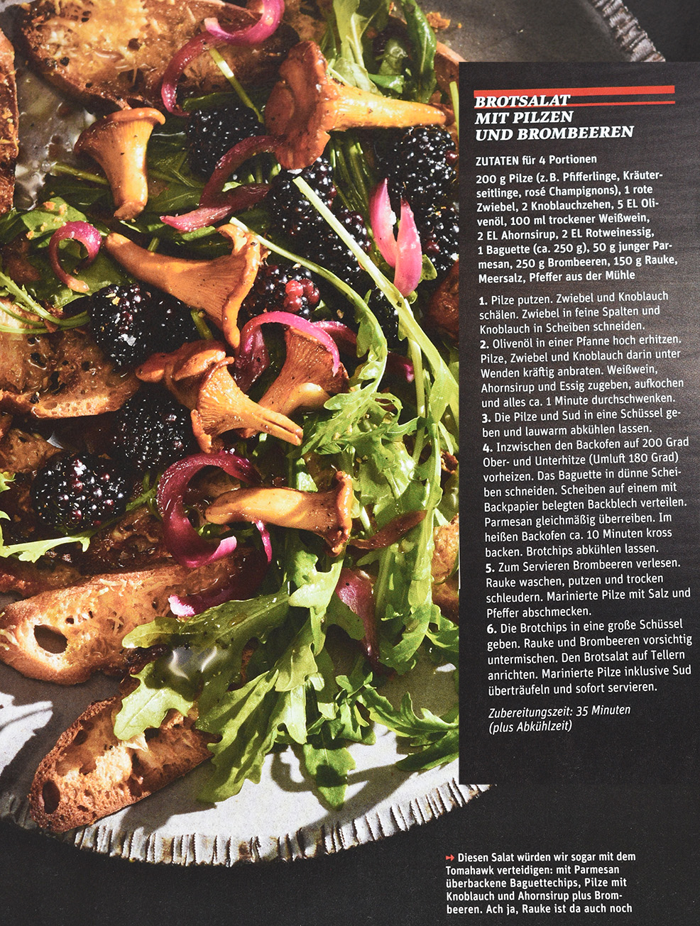 Brotsalat mit Pilzen und Brombeeren