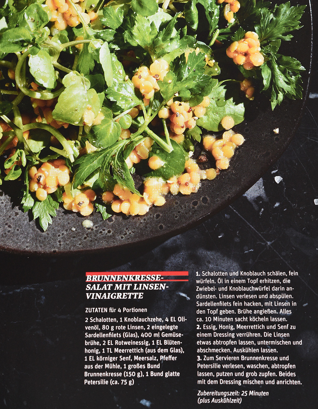 Brunnenkresse-Salat mit Linsen Vinaigrete