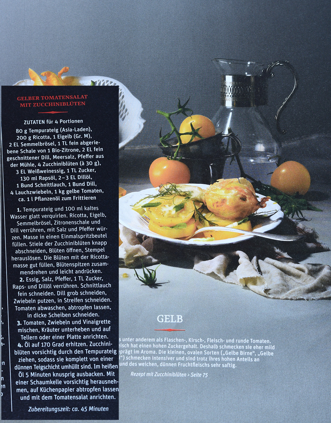 Gelber Tomatensalat mit Zucchini-Blüten