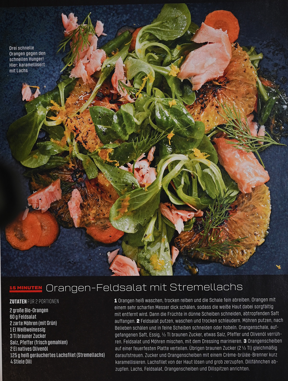 Orangen Feldsalat mit Stremellachs